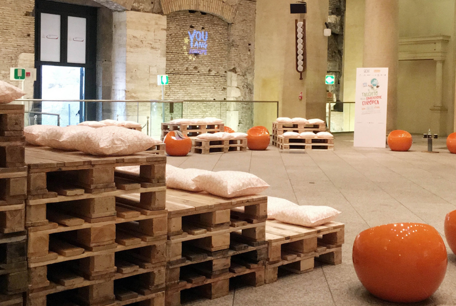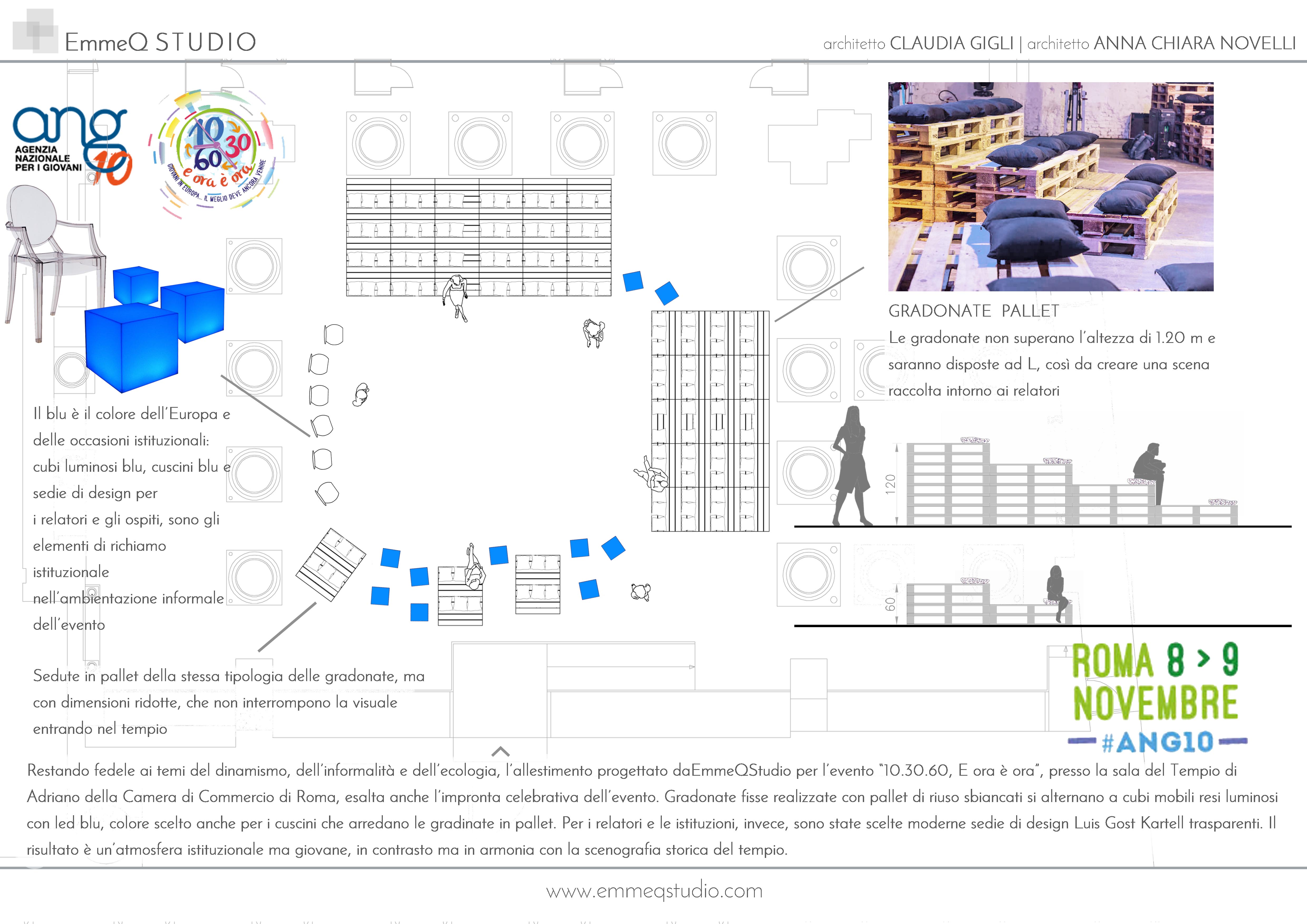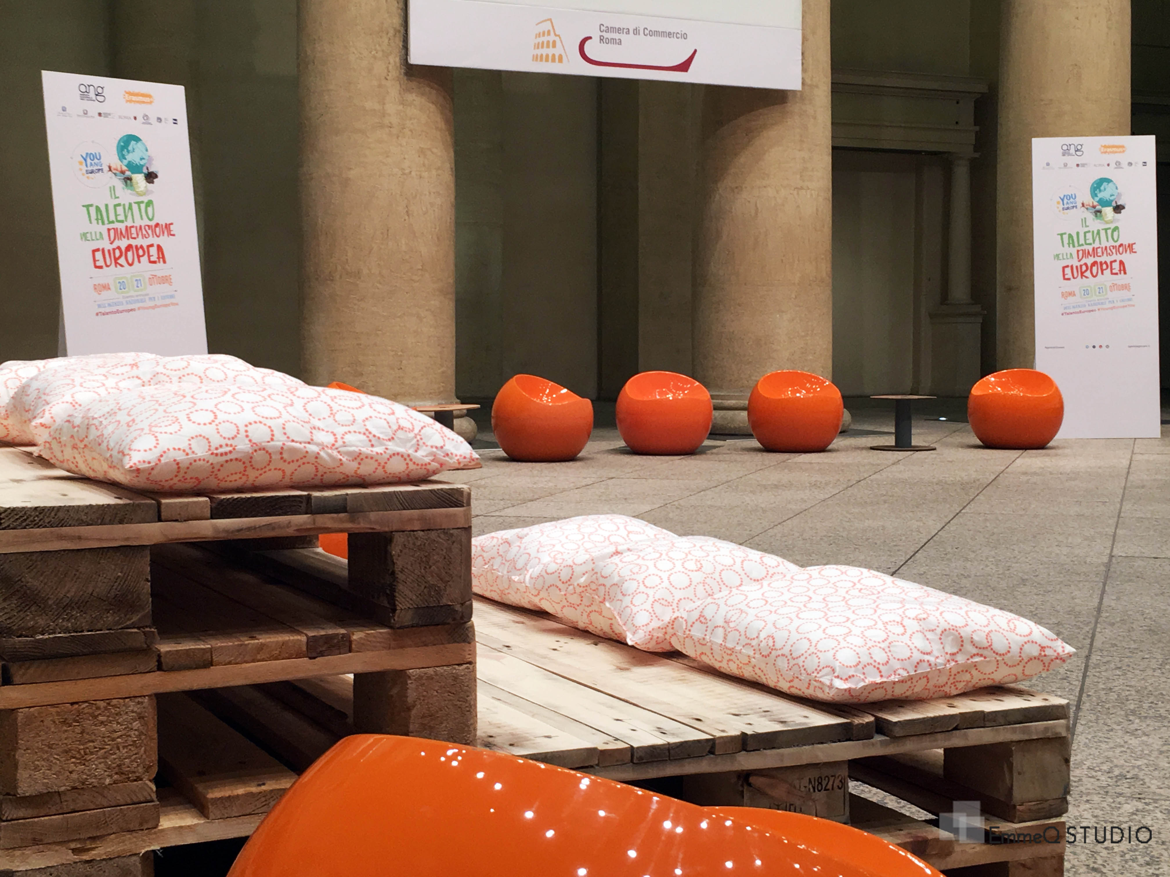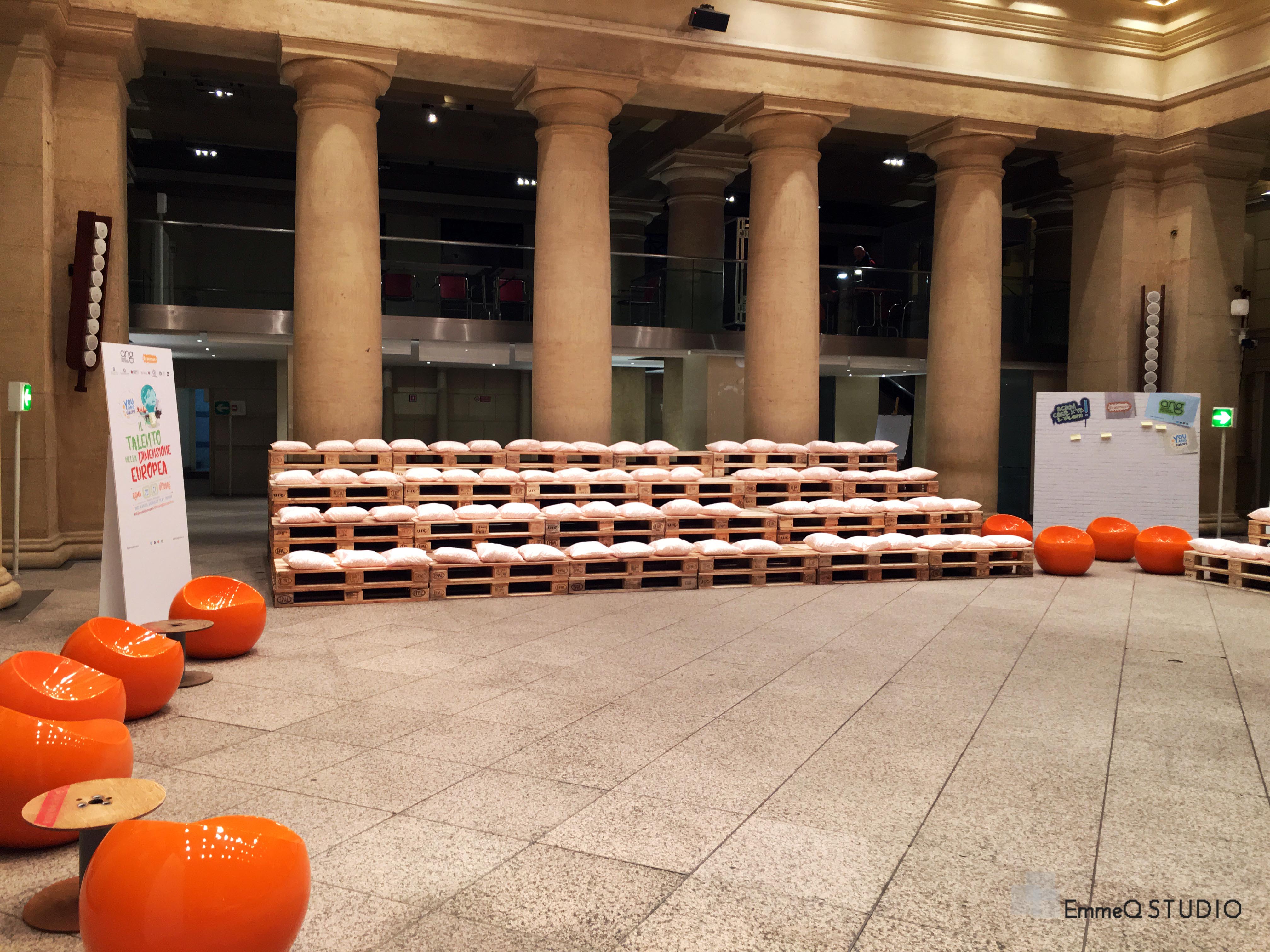 Giovane, dinamico, ecologico: questi i temi intorno ai quali è stato progettato da EmmeQ STUDIO l’allestimento per YOUNG EUROPE YOU, organizzato dall’ Agenzia Nazionale Giovani al Tempio di Adriano in Roma.